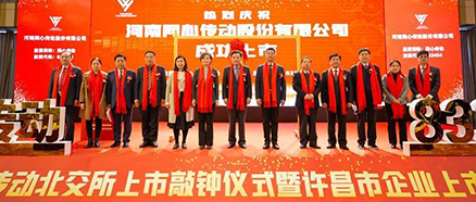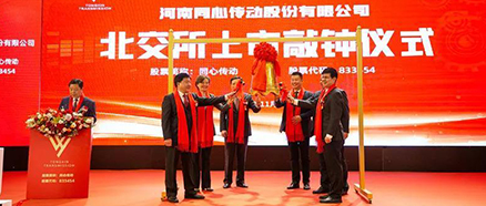 - 2021年11月15日上午,河南同心传动股份有限公司北交所上市敲钟仪式暨许昌市企业上市论坛在许昌中原国际饭店举行。仪式由许昌市政协副主席、市商务局局长张巍巍主持。